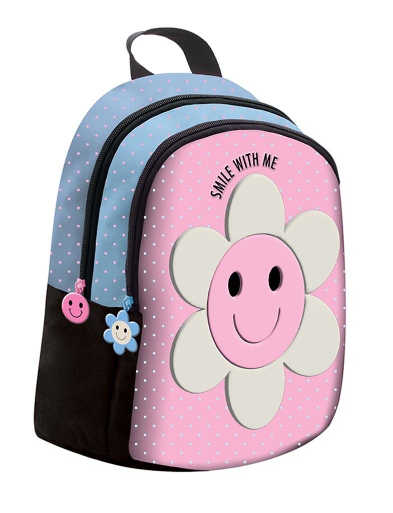"Różowo - błekitny plecaczek z kwiatkiem to prawdziwy strzał w dziesiątkę dla dziewczynek. Jest to model wykonany z trwałych i odpornych na uszkodzenia materiałów. Zastosowane do produkcji tworzywa nie stanowią żadnego zagrożenia dla malucha. Trzeba dodać, że opisywany plecak zapewnia najwyższą wygodę użytkowania. Tylna komora elastycznie dopasowuje się do kręgosłupa. Opis plecaczka przedszkolnego