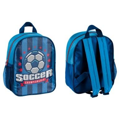 Mały plecak przedszkolny, jedna komora, jedna boczna kieszeń z siatki (mieści małą butelkę, bidon lub termos). Regulowane szelki, wygodny uchwyt do przenoszenia.