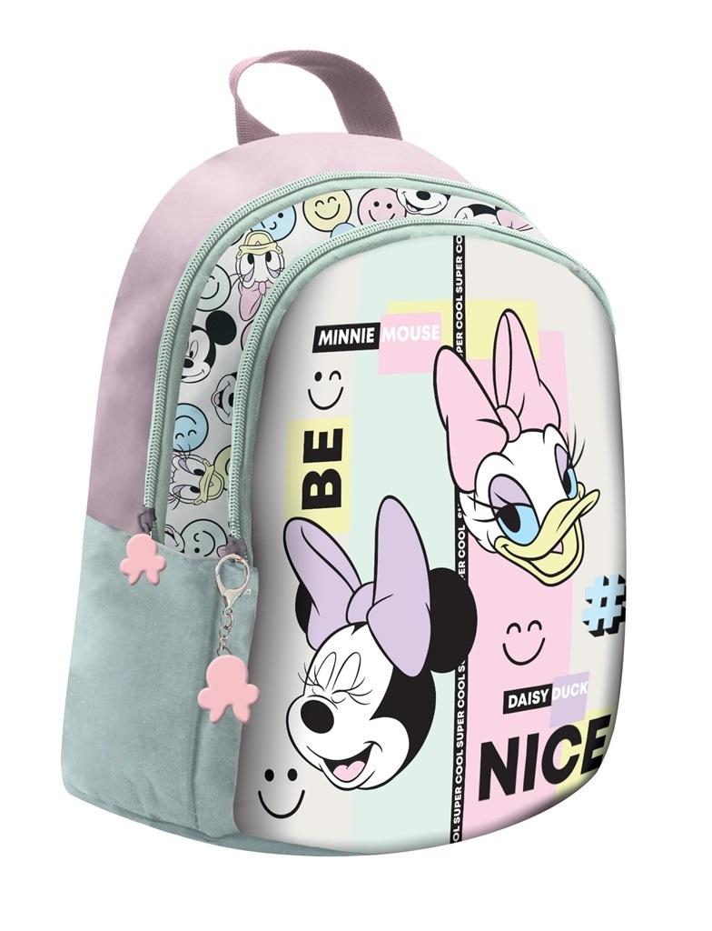 "Różowo-niebieski, pastelowy, plecaczek przedstawiający Myszkę Minnie i Daisy to prawdziwy strzał w dziesiątkę dla wybrednych dziewczynek. Jest to model wykonany z trwałych i odpornych na uszkodzenia materiałów. Zastosowane do produkcji tworzywa nie stanowią żadnego zagrożenia dla malucha. Trzeba dodać, że opisywany plecak zapewnia najwyższą wygodę użytkowania. Tylna komora elastycznie dopasowuje się do kręgosłupa.Opis plecaczka przedszkolnego