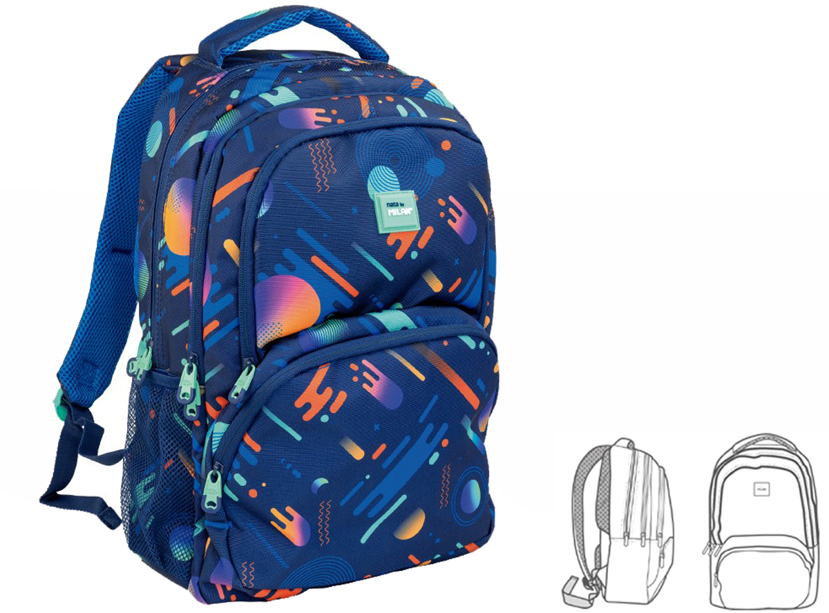 Plecak młodzieżowy MILAN z 4 suwakami z kolekcji PSICOGALAXY niebieski.