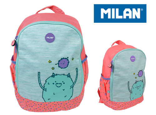 Plecak MILAN mały z kolekcji MIMO w kolorze różowo - zielonym. Po bokach dodatkowe kieszonki. Regulowane miękkie szelki. Górny uchwyt do zawieszenia. Idealny do przedszkola, szkoły lub na wycieczkę. Wymiary: 33 x 23,5 x 10 cm. Materiał wierzchni: 100% poliester. Podszewka 150D poliester.