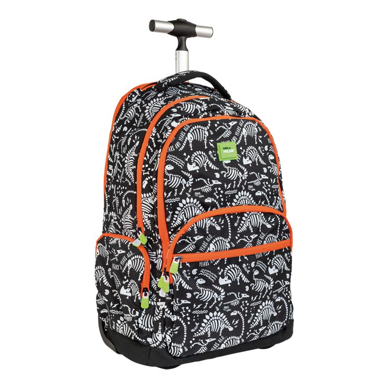 Plecak młodzieżowy MILAN na kółkach z metalową chowaną rączką i z 6 suwakami z kolekcji MILLION YEARS AGO czarny.