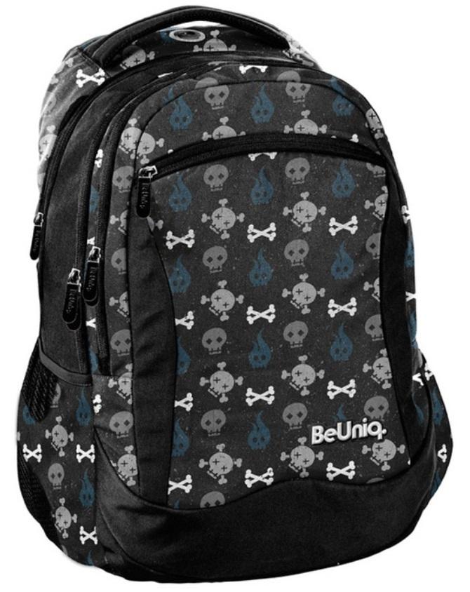 Plecak młodzieżowy, szkolny w czaszki. Posiada trzy pojemne komory, kieszeń przednią z organizerem zamykaną na zamek oraz dwie boczne kieszonki wykonane z siatki, które pomieszczą butelkę, bidon czy termos. W komorze głównej znajduje się przegroda (na laptop), w drugiej komorze organizer z kieszenią na zamek oraz uchwyt na klucze. Wzmocnione profilowane plecy oraz miękkie, regulowane szelki sprawiają, że plecak nosi się niezwykle komfortowo. Plecak posiada wygodny uchwyt do przenoszenia, uszko do powieszenia oraz elementy odblaskowe dla zwiększenia bezpieczeństwa na drodze lub po zmroku. Ze względu na swój rozmiar, plecak to idealnie rozwiązanie zarówno dla nastolatków, jak i dla młodszych dzieci. W Paso sięgamy po nowoczesne wzornictwo, nie zapominając o tym, by oferować solidne i praktyczne produkty.