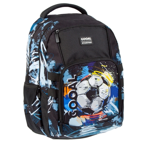 Plecak młodzieżowy Football II składa się z jednej obszernej komory zapinanej na zamek i trzech przednich kieszeni w tym jednej z organizerem. Po bokach posiada kieszenie z siateczki na napój z dodatkowym zabezpieczeniem w postaci zapinanych pasków. Wewnątrz plecaka znajduje się kieszeń na laptop. Usztywniane plecy i mocne ramiona zostały wyściełane gąbką, dopasowują się do pleców i zapewniają komfort noszenia. Wymiary: 43,5 x 30 x 20 cm