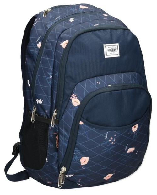 Wysokiej jakości plecak młodzieżowy w modnych odcieniach szarości i granatu z nowoczesnym wzorem. Cechy: - dodatkowe, elastyczne zapięcie z przodu odciążające kręgosłup i zwiększające przyczepność plecaka - szerokie szelki z regulacją - uchwyt do zawieszenia plecaka - metalowe uchwyty od suwaków z logiem STREET® - miękko wyściełana kieszonka na suwak idealna na telefon lub okulary - w komorze głównej wyściełana przegroda na laptopa, oraz dodatkowa kieszeń na akcesoria - grube, sztywne plecy - komora przednia z kieszenią organizacyjną, kieszonką na suwak oraz z odpinanym zapięciem na klucze - kieszeń przednia na suwak - kieszeń przednia na rzep - dwie boczne kieszonki z siatki na bidon i akcesoria - podwójny, wzmocniony spód Trendy Lifestyle STREET® since 1989. Wymiary: 30 x 20 x 48 cm Waga: 0,64 kg