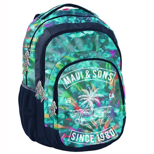 Plecak młodzieżowy Maui and Sons idealny do szkoły. Posiada trzy pojemne komory, kieszeń przednią z organizerem zamykaną na zamek oraz dwie boczne kieszonki wykonane z siatki, które pomieszczą butelkę, bidon czy termos. W komorze głównej znajduje się przegroda (na laptop), w drugiej komorze organizer z kieszenią na zamek oraz uchwyt na klucze. Wzmocnione profilowane plecy evafoam oraz miękkie, regulowane szelki sprawiają, że plecak nosi się niezwykle komfortowo. Plecak posiada wygodny uchwyt do przenoszenia, uszko do powieszenia oraz elementy odblaskowe dla zwiększenia bezpieczeństwa na drodze lub po zmroku. W Paso sięgamy po nowoczesne wzornictwo, nie zapominając o tym, by oferować solidne i praktyczne produkty.