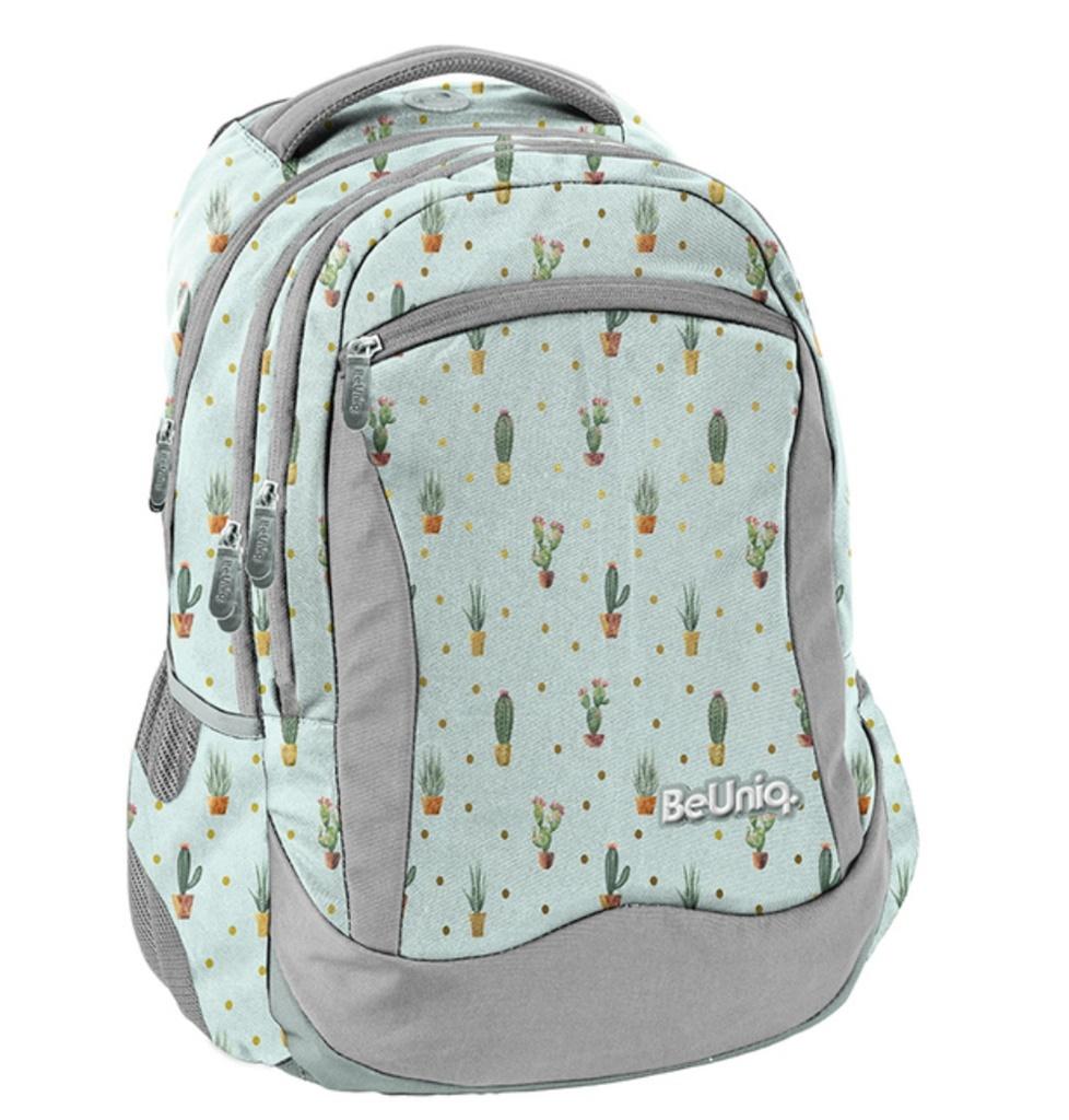 Plecak szkolny. Trzy pojemne komory, kieszeń przednia z organizerem, 2 boczne kieszenie z siatki+materiał. Wzmocnione profilowane plecy, miękkie wygodne szelki. Wzmocniony i usztywniony spód. Wygodny uchwyt do przenoszenia i uszko do powieszenia. W komorze głównej przegroda (na laptop), w drugiej komorze organizer z kieszenią na zamek, uchwyt na klucze. Elementy odblaskowe dla większego bezpieczeństwa. Wykonany z materiału wodoodpornego.