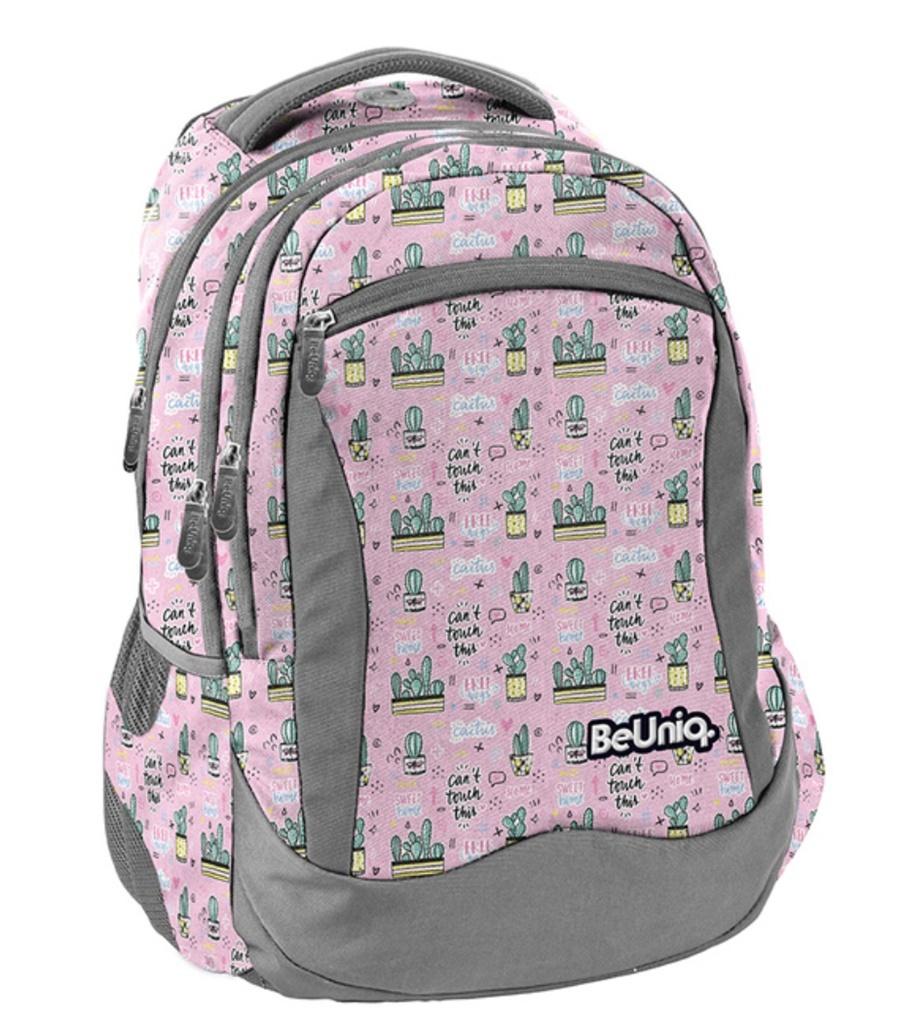 Plecak młodzieżowy BeUniq Mexico. Model ten wyposażony jest w trzy komory, kieszeń przednią z organizerem zamykaną na zamek oraz dwie boczne kieszonki wykonane z siatki oraz materiału, które pomieszczą butelkę, bidon czy termos. W komorze głównej znajduje się przegroda (na laptop), w drugiej komorze organizer z kieszenią na zamek oraz uchwyt na klucze. Wzmocnione profilowane plecy oraz miękkie, regulowane szelki sprawiają, że plecak nosi się niezwykle komfortowo. Plecak wykonany jest z wodoodpornego materiału, dzięki czemu model ten doskonale znosi różne warunki atmosferyczne. Posiada wygodny uchwyt do przenoszenia, uszko do powieszenia oraz elementy odblaskowe dla zwiększenia bezpieczeństwa na drodze lub po zmroku.