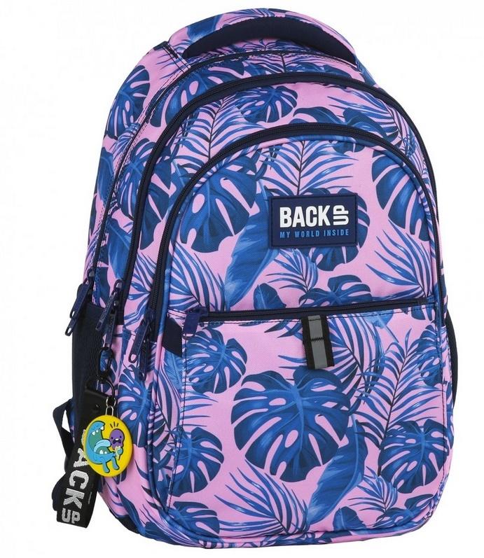 Plecak BackUP model N 20 wzór inspirowany naturą, gdzie na różowym tle widnieją supermodne, uwielbiane przez influencerów liście monstery w intensywnym niebieskim kolorze. Gumowa naszywka z logo BackUP dodaje plecakowi ciekawego designu. Nazwa wzoru: monstery-pink. W zestawie brelok do kluczy - gratis. Wyposażenie: - 3 duże komory - 1 bardzo pojemna, przednia kieszeń poszerzana na gumki - 2 boczne kieszenie na napój - w pierwszej komorze kieszenie na laptopa i tablet - w drugiej komorze wygodna kieszeń na zamek na drobiazgi - w przedniej komorze poręczny organizer z 2 kieszeniami na zamek oraz uchwytem na klucze - wygodne, profilowane szelki - wygodny uchwyt do przenoszenia plecaka i dodatkowy uchwyt do powieszenia - ergonomiczne, usztywnione plecy wyprofilowane oddychającą pianką - dyskretny odblask na szelkach i z przodu plecaka - rozmiar: 42x30x20 cm