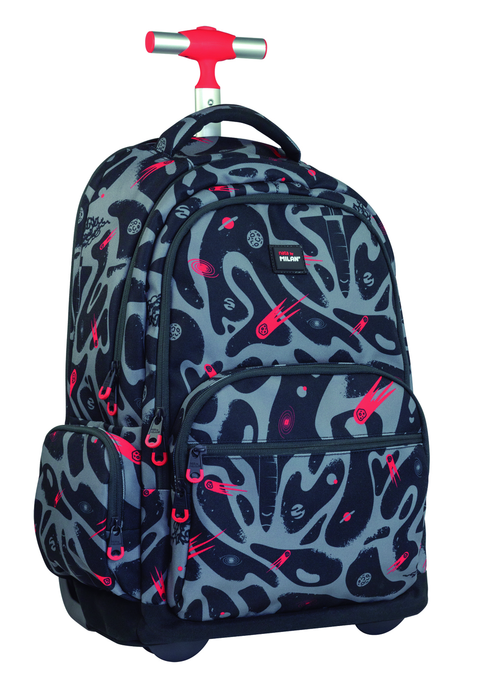 Plecak na kółkach z metalową chowaną rączką i z 6 suwakami z kolekcji ROCKET BOOM.
