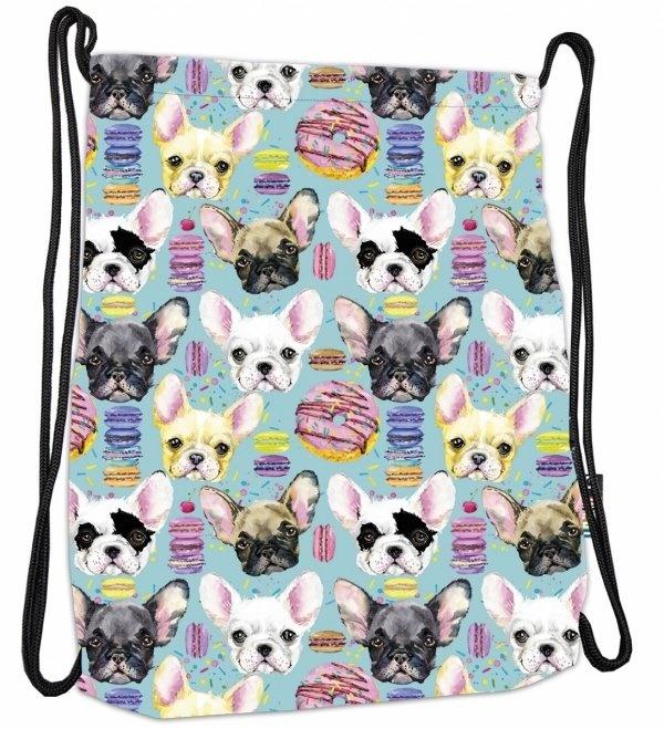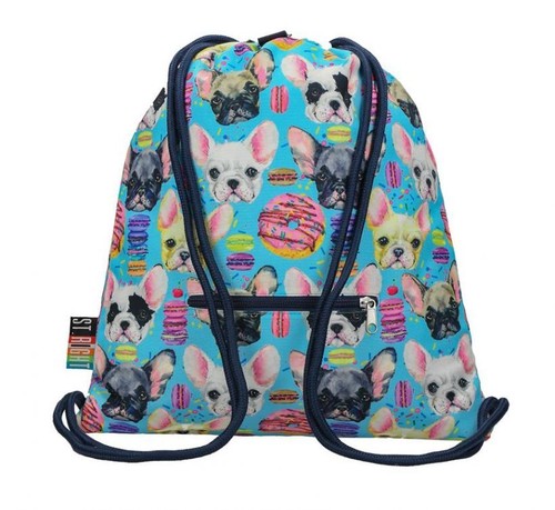 1 komora główna ściągana na sznurek 1 kieszeń zewnętrzna zapinana na suwak grube sznurki-szelki do noszenia na plecach wymiary: (wysokość) 45 cm, (szerokość) 38 cm waga: 250 g materiał: poliester / bawełna