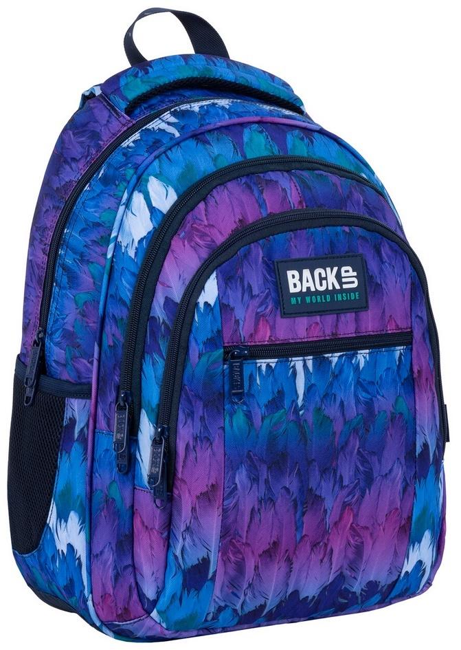 Lekkość piór w wydaniu ombre. Odcienie fioletu, różu, granatu, zieleni i błękitu doskonale komponują się ze sobą tworząc niezwykły efekt przenikania się barw. Kolorystyka połączona z niedosłownym wzorem piór zauroczy każdą fankę supermodnych, wielokolorowych deseni. Ten plecak to must-have każdej fashionistki. Plecak BackUP doda charakteru każdej Twojej stylizacji.