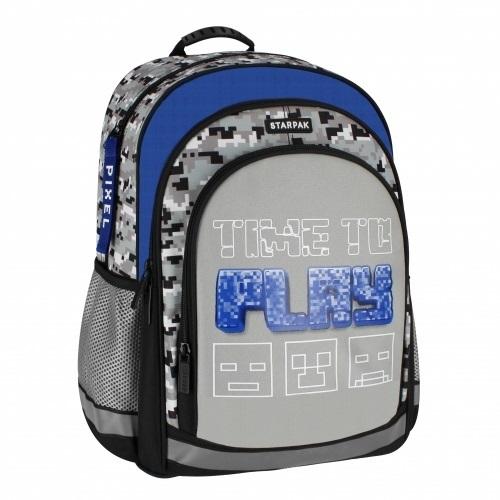 Plecak składa się z 1 dużej komory i 2 obszernych przednich kieszeni, 2 boczne wzmocnione kieszenie siatkowe na butelkę z napojem, wytrzymałe zamki błyskawiczne, ergonomiczne plecy i szelki ,plecy z systemem wentylacji dla większego komfortu, grube, miękkie szelki chronią ramiona, regulowane szelki pozwalają dopasować plecak do wzrostu i budowy ciała, uchwyt powlekany gumą pozwalając zawiesić plecak na wieszaku lub wygodnie nosić go w ręce, odblaskowe paski umieszczone na szelkach, bocznych kieszeniach oraz z przodu zwiększające widoczność plecaka w nocy (bezpieczeństwo dziecka). Plecak w kolorze szarym z dodatkiem niebieskiego. Wygodny i funkcjonalny plecak szkolny STARPAK Pixel. Użytkowanie takiego plecaka to czysta przyjemność. Zapoznaj się również z innymi produktami STARPAK dedykowanymi dzieciom! Wykonany z trwałego materiału wykończonego elementami odblaskowymi dla większego bezpieczeństwa. Plecak jest wyrobem tekstylnym. Przeznaczony dla dzieci w wieku: 3+. Wymiary produktu (wys. x szer. x gł.) [cm]: 40x29x20, waga produktu [kg]: 0,63 kg. Plecak pakowany w folię. Karton 12 szt.