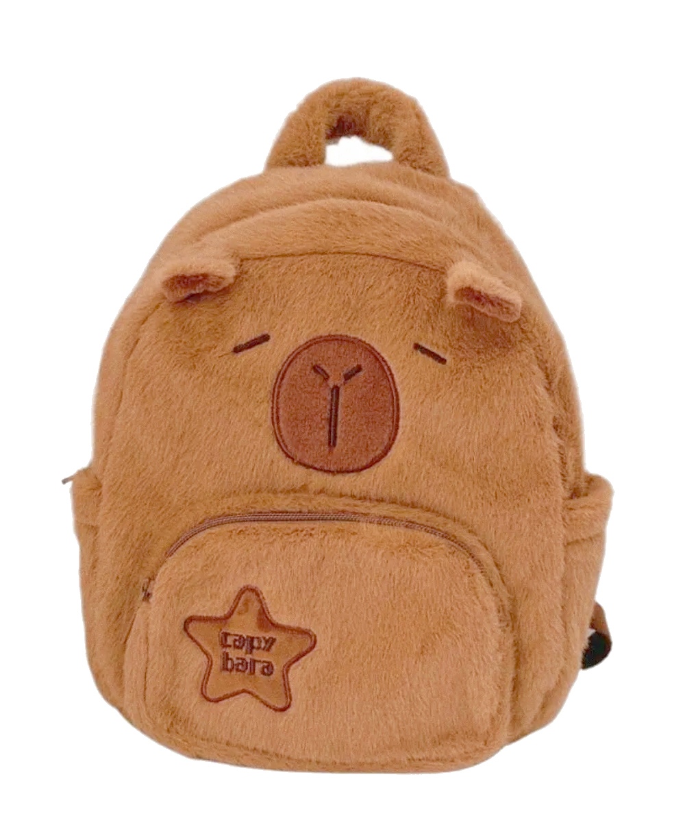Plecak pluszowy w kształcie kapibary o wymiarach 28 x 25 x 11 cm.