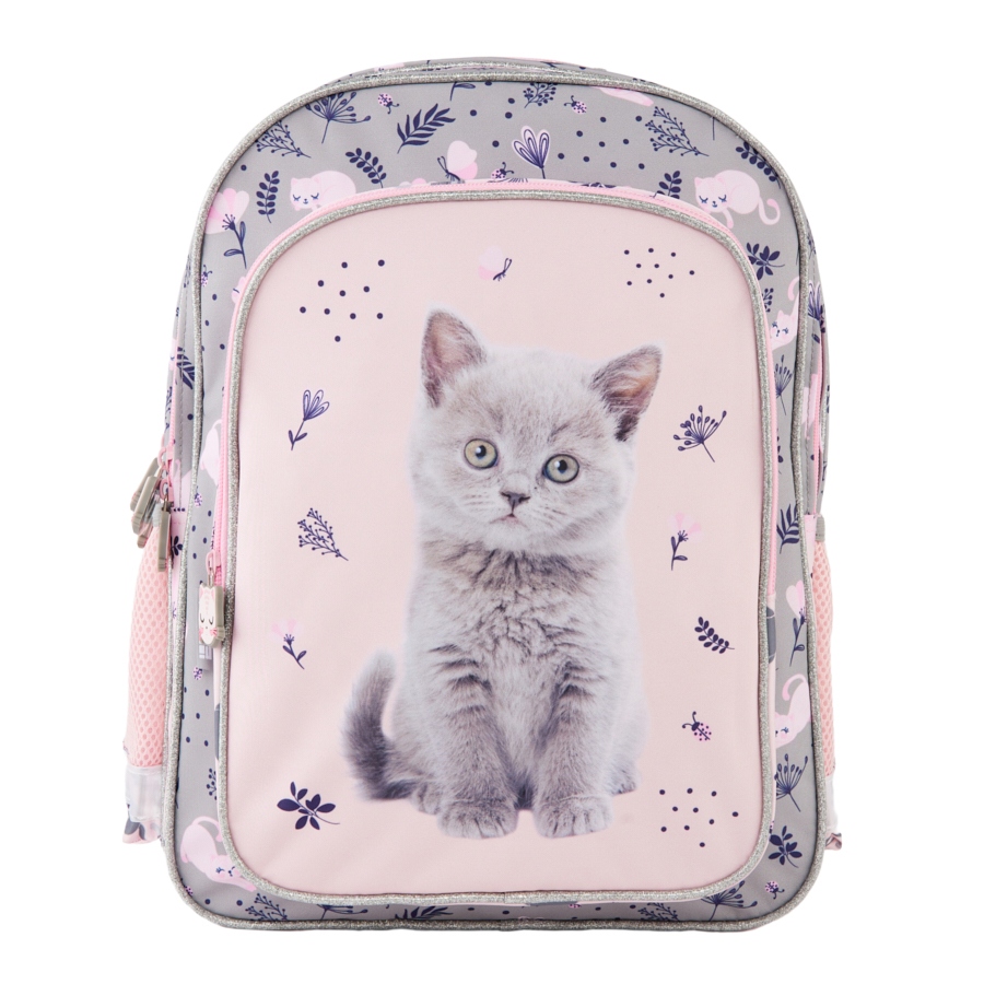 Dwie duże komory zapinane na zamek, jedna bardzo obszerna kieszeń na śniadanie, boczne kieszenie z siatki (mieści się butelka, mały termos lub bidon). Usztywniane, ergonomicznie wyprofilowane plecy pokryte siatką.