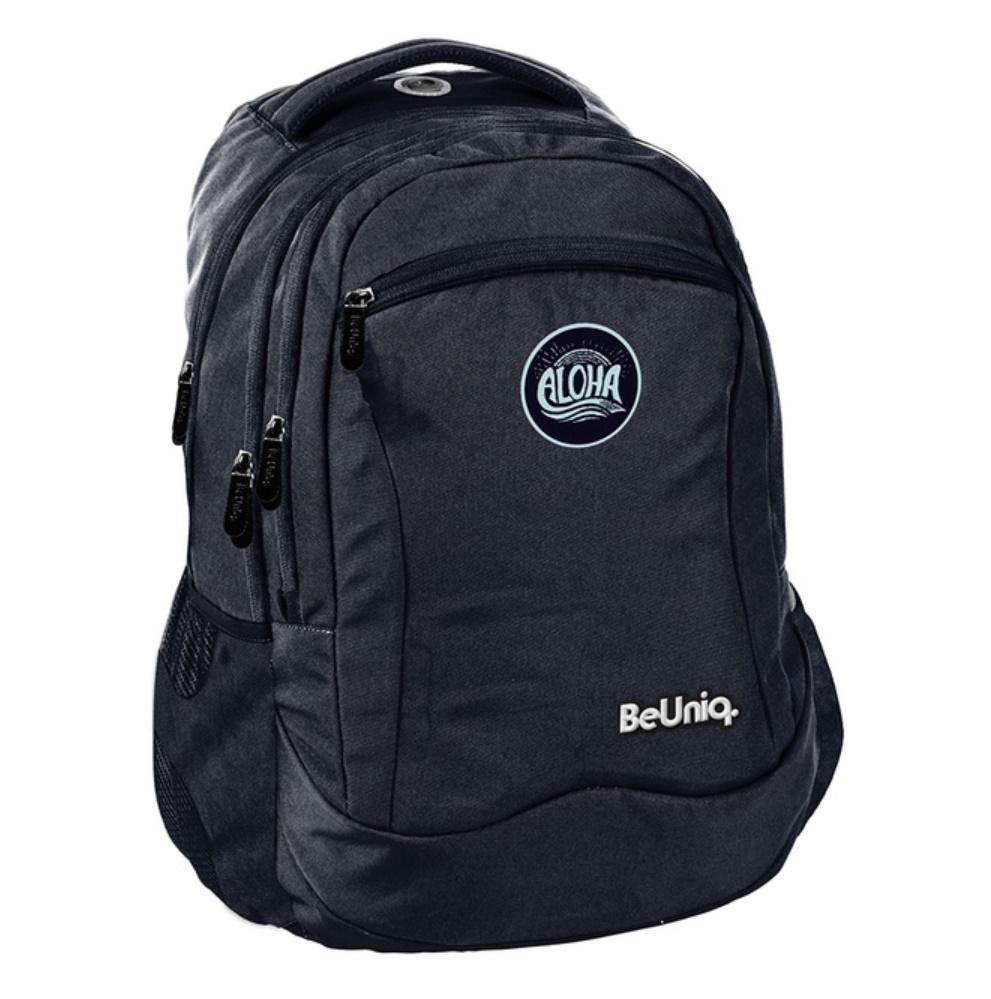 Plecak młodzieżowy BeUniq Aloha. Model ten wyposażony jest w trzy komory, kieszeń przednią z organizerem zamykaną na zamek oraz dwie boczne kieszonki wykonane z siatki oraz materiału, które pomieszczą butelkę, bidon czy termos.