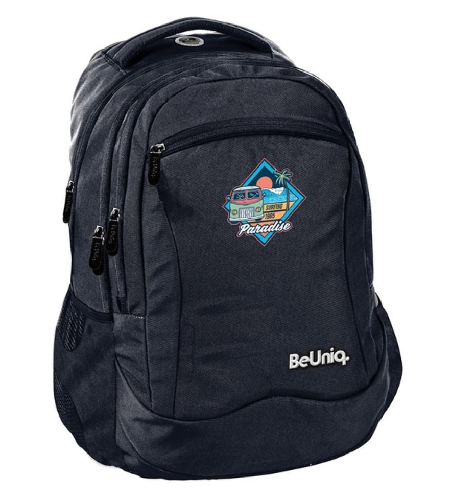 Plecak młodzieżowy BeUniq Paradise. Model ten wyposażony jest w trzy komory, kieszeń przednią z organizerem zamykaną na zamek oraz dwie boczne kieszonki wykonane z siatki oraz materiału, które pomieszczą butelkę, bidon czy termos.