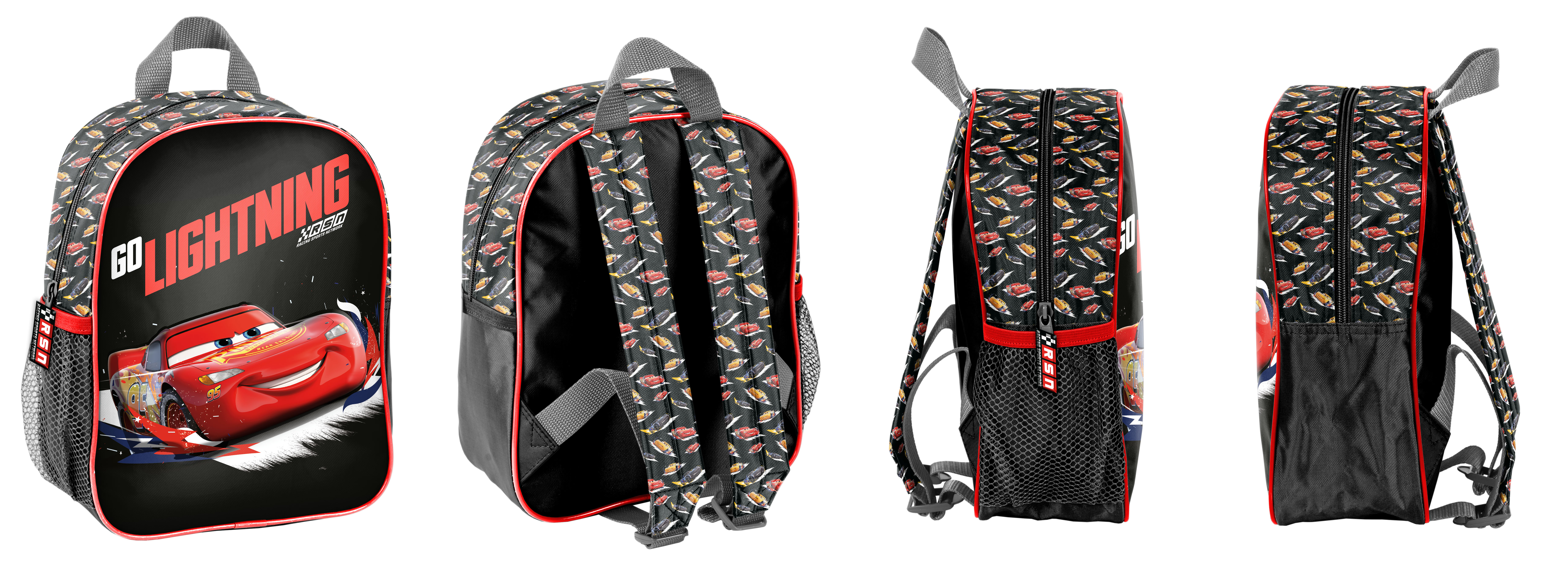 Mały plecak przedszkolny, jedna komora, jedna boczna kieszeń z siatki (mieści małą butelkę, bidon lub termos). Regulowane szelki, wygodny uchwyt do przenoszenia. 3D