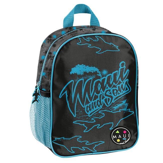 Plecak przedszkolny Maui and Sons czarno-niebieski. Posiada jedną komorę oraz boczną kieszonkę wykonaną z siatki, w której można przechować małą butelkę, bidon lub termos. Plecak wyposażony jest w regulowane szelki, dzięki którym można idealnie dostosować plecak do wzrostu dziecka. Plecak ma wygodny uchwyt do przenoszenia oraz ozdobne pullery. Idealny dla młodszych dzieci, na szkolną wycieczkę, zajęcia pozalekcyjne czy do przedszkola, W Paso sięgamy po atrakcyjne dla dzieci wzory, nie zapominając o tym, by oferować solidne i praktyczne produkty. Waga: 150 g Rozmiar: 28x22x10