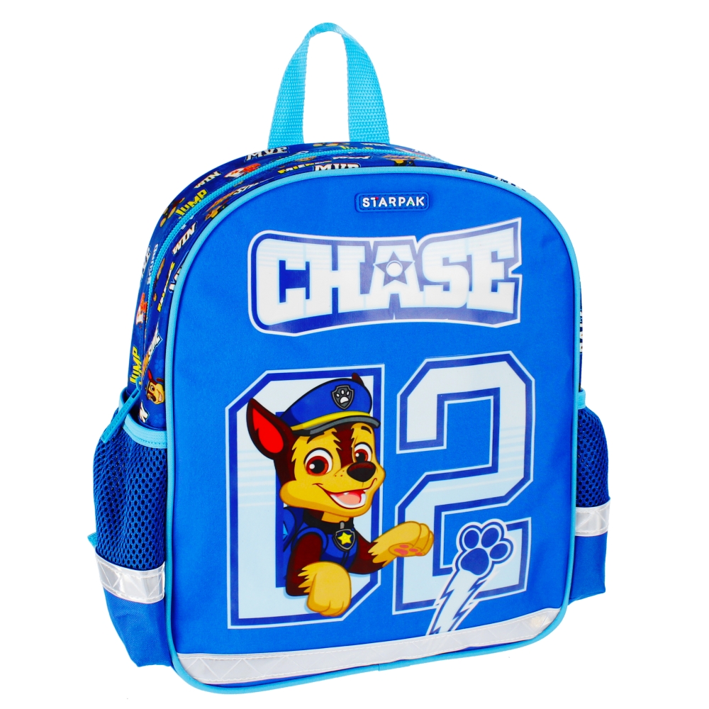 Średniej wielkości plecak, idealny do przedszkola i na wycieczki, 1 pojemna komora wyścielona podszewką dzięki czemu jest łatwa w czyszczeniu, dwie boczne kieszonki na bidon, regulowane szelki, szelki i plecy wzmocnione gąbką, wytrzymałe zamki błyskawiczne, elementy odblaskowe z przodu, na bocznych kieszeniach oraz na szelkach plecaka. Wygodny i funkcjonalny plecak w rozmiarze midi z kolekcji STARPAK z licencją Psi Patrol.