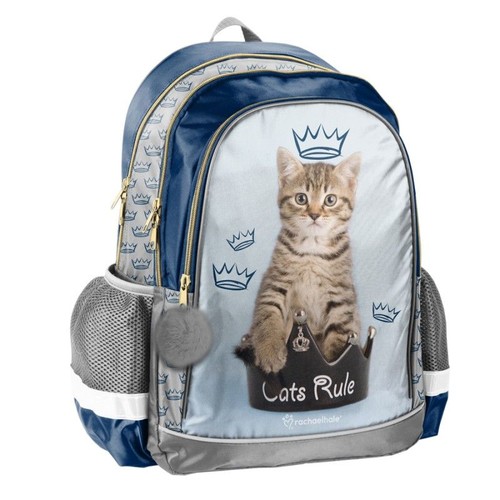 Plecak szkolny dwukomorowy. Dwie duże komory zapinane na zamek, jedna bardzo obszerna kieszeń na śniadanie, boczne kieszenie z siatki (mieści się butelka, mały termos lub bidon). Usztywniane, ergonomicznie wyprofilowane plecy pokryte siatką, profilowane szelki. Elementy odblaskowe.