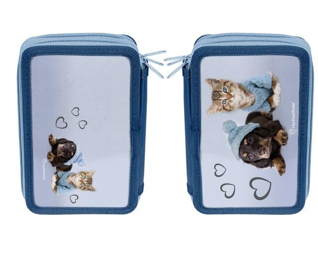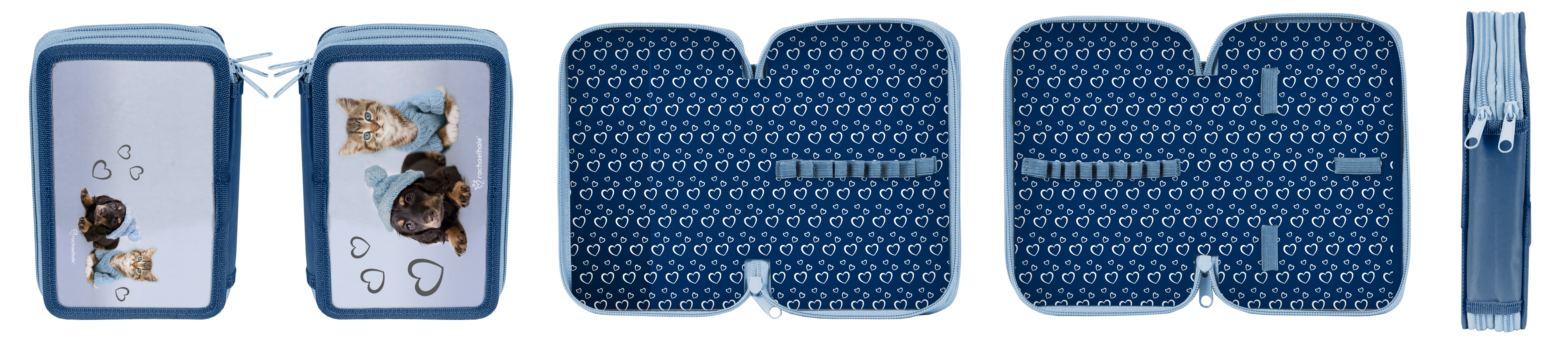 Piórnik 3-komorowy bez wyposażenia. Zadrukowane kolorowe wnętrze. Materiał Polyester 420D Rozmiar 19x11x4
