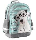 Plecak szkolny z dwoma komorami dużymi, dwoma kieszeniami na przodzie, bocznymi kieszonkami z siatki. Usztywnione, ergonomiczne wyprofilowane plecy i szelki. Plecy i szelki pokryte miękkim materiałem. Usztywnione dno. Elementy odblaskowe.