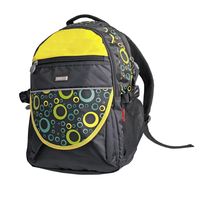 Plecak szkolno-sportowy. Posiada dwie komory oraz dwie kieszenie boczne, plecy oraz szelki plecaka są podszyte gąbką. Materiał: poliester.