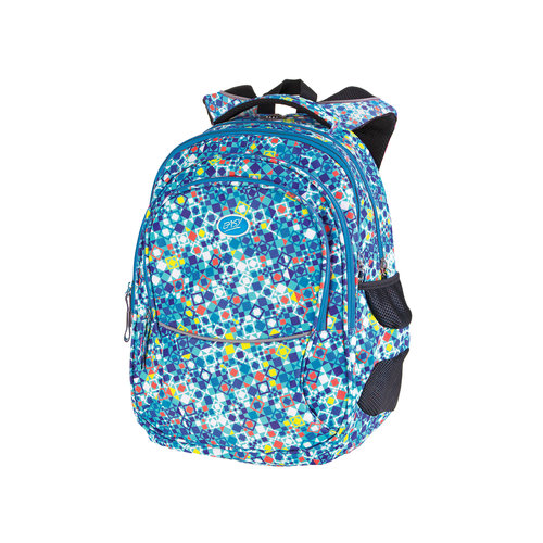 Funkcjonalny 4 komorowy plecak szkolno-sportowy: - 4 komory zapinane na zamek, - kieszeń na laptopa, kieszeń z organizerem, dwie kieszonki z boku np. na napoje - funkcjonalne wejście na słuchawki, - wygodny uchwyt do przenoszenia dodatkowo wzmocniony tworzywem, - szelki wzmocnione i podszyte specjalną gabką, - wyprofilowana tylnia ścianka plecaka podszyta miękkim materiałem, - wykonany z metriałów zapewniających dobrą cyrkulację powietrza, - elementy odblaskowe z przodu plecaka. Materiał: Poliester 1680 i 600D