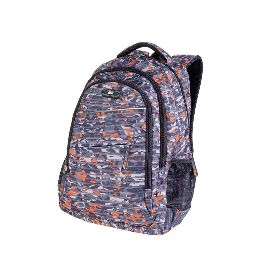 Funkcjonalny 2 komorowy plecak młodzieżowy: - 2 komory zapinane na zamek, - dwie kieszonki z boku np. na napoje - wygodny uchwyt do przenoszenia dodatkowo wzmocniony tworzywem, - szelki wzmocnione i podszyte specjalną gabką, - wyprofilowana tylnia ścianka plecaka podszyta miękkim materiałem, - wykonany z metriałów zapewniających dobrą cyrkulację powietrza, - elementy odblaskowe z przodu plecaka. Materiał: Poliester 600D
