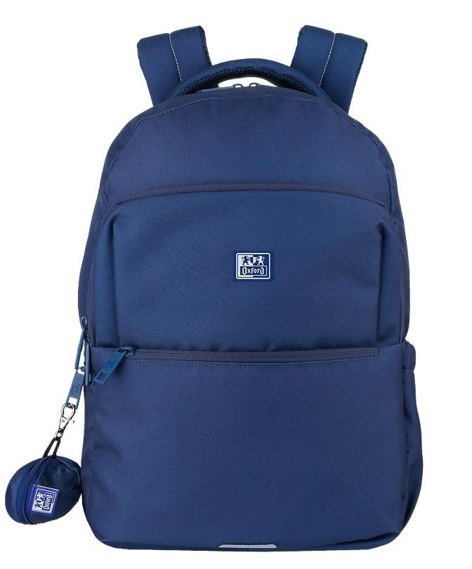 Plecak Oxford B-Ready to praktyczny i nowoczesny model zaprojektowany z myślą o codziennych potrzebach uczniów i osób aktywnych. Wykonany z recyklingowanego poliestru, łączy trwałość z troską o środowisko. Klasyczna forma w połączeniu z funkcjonalnymi detalami sprawia, że idealnie sprawdza się zarówno w szkole, jak i podczas codziennego użytkowania. Plecak posiada przestronną komorę główną z usztywnioną kieszenią na laptopa oraz dodatkowe przegródki ułatwiające organizację książek, zeszytów i akcesoriów. Dwie boczne kieszenie na bidon i drobiazgi zwiększają wygodę użytkowania, a tylna kieszeń na suwak umożliwia bezpieczne przechowywanie wartościowych przedmiotów. Miękkie, piankowe plecy z siatką zapewniają komfort i cyrkulację powietrza, a odblaskowe elementy poprawiają widoczność po zmroku. Dodatkowo model B-Ready wyposażono w worek przeciwdeszczowy, który chroni zawartość przed wilgocią, oraz gumowe nóżki dystansowe, zwiększające odporność plecaka na przetarcia.