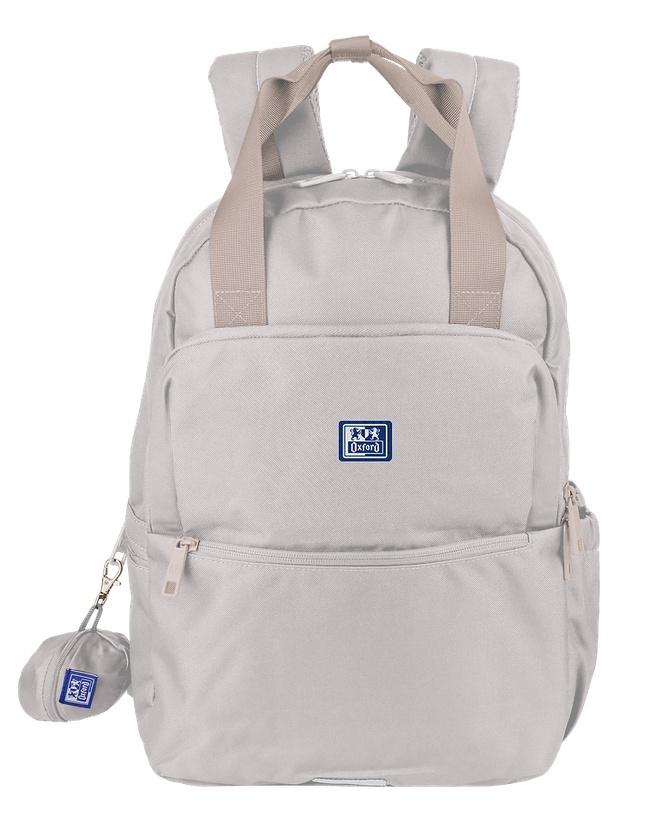Plecak Oxford B-Ready z rączką to funkcjonalny i stylowy model stworzony z myślą o codziennym użytkowaniu. Wykonany z recyklingowanego poliestru, jest trwały, lekki i przyjazny dla środowiska. Klasyczny design w połączeniu z dopracowanymi detalami sprawia, że doskonale sprawdza się zarówno w szkole, jak i w drodze do pracy czy na zajęcia dodatkowe. Plecak posiada przestronną komorę główną z usztywnioną kieszenią na laptopa, dodatkowe przegrody na akcesoria oraz brelok na klucze. Dwie boczne kieszenie jedna na bidon, druga zamykana na suwak zapewniają wygodny dostęp do drobiazgów. Miękkie, piankowe plecy z siatką gwarantują komfort noszenia, a odblaskowe elementy zwiększają widoczność po zmroku. W zestawie znajduje się worek przeciwdeszczowy, który chroni zawartość przed wilgocią, oraz gumowe nóżki dystansowe, dzięki którym spód plecaka pozostaje suchy i odporny na przetarcia.