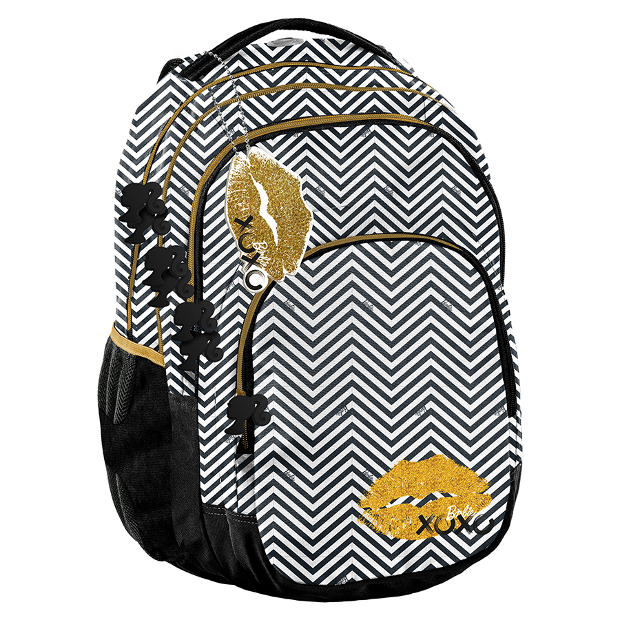 Plecak młodzieżowy, szkolny Barbie Lipstick. Posiada trzy pojemne komory, kieszeń przednią z organizerem zamykaną na zamek oraz dwie boczne kieszonki wykonane z siatki, które pomieszczą butelkę, bidon czy termos. W komorze głównej znajduje się przegroda (na laptop), w drugiej komorze organizer z kieszenią na zamek oraz uchwyt na klucze. Wzmocnione profilowane plecy evafoam oraz miękkie, regulowane szelki sprawiają, że plecak nosi się niezwykle komfortowo. Plecak posiada wygodny uchwyt do przenoszenia, uszko do powieszenia oraz elementy odblaskowe dla zwiększenia bezpieczeństwa na drodze lub po zmroku. W Paso sięgamy po nowoczesne wzornictwo, nie zapominając o tym, by oferować solidne i praktyczne produkty. Waga: 600 g Rozmiar: 44x32x25