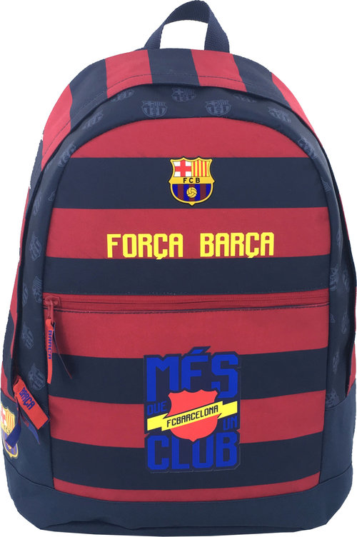 Oryginalny plecak na licencji FC Barcelony. Będzie doskonałym wyborem podczas niewymagających dni szkolnych, na wycieczkę lub wyprawę do miasta. - główna komora zapinana na suwak - przednia kieszonka zapinana na suwak - wyściełane, oddychające plecy - szerokie, oddychające szelki z regulacją - na przodzie plecaka herb FCB oraz napis ‘BARCA FORCA’ - na szelce nadruk herbu Barcy - miękki, oddychający uchwyt do przenoszenia plecaka w ręku - suwaki zakończone materiałem z napisem BARCA - oryginalna metka z hologramem FC Barcelona Wymiary: 34 x 14 x 45 Waga: 0,33 kg