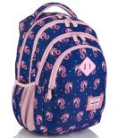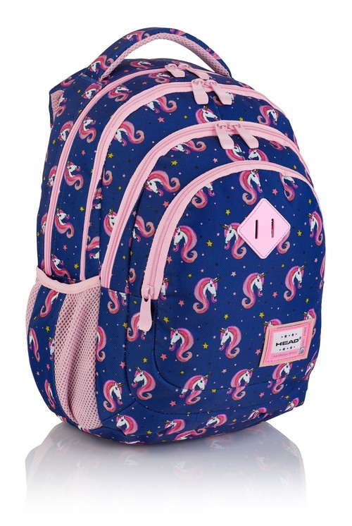 4 komory 2 kieszenie zewnętrzne- siatki wzmocniony uchwyt sztywne, wyprofilowane gąbką plecy wyściełane gąbką szelki z możliwością regulacji przegroda na laptop wyjście na słuchawki kieszonka na urządzenia mobilne wyściełana polarem organizer z kieszonką na zamek w przedniej komorze wyprofilowane metalowe uchwyty do suwaków elementy odblaskowe tkanina: polyester 600D x 600D kolorowa, zadrukowana podszewka