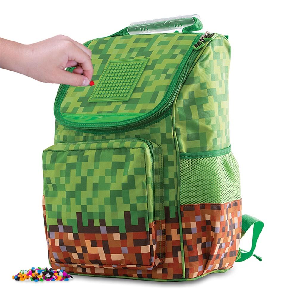 Praktyczny, komfortowy plecak PIXIE CREW z motywem bestsellerowej zielono-brązowej kostki, nawiązującej do znanej na całym świecie gry komputerowej. Posiada kreatywny zielony panel, na którym można tworzyć oryginalne i spersonalizowane grafiki, za pomocą małych silikonowych pikseli. Plecak jest pojemny i bardzo wygodny. Ma dużą, funkcjonalną komorę główną oraz przednią kieszeń, z zapięciem na zamek błyskawiczny. Większa komora z łatwością zmieści książki, czy dokumenty wielkości A4. Po bokach plecaka umieszczono dwie zewnętrzne kieszenie z siatki na napoje, z elastyczną gumką u góry. Wygodne użytkowanie i bezpieczeństwo kręgosłupa, zapewniają regulowane, miękkie, szerokie szelki oraz ergonomicznie ukształtowany, wzmocniony tył z wentylacją. Regulowana klamra na klatkę piersiową, pozwala na optymalne dopasowanie do wzrostu dziecka. Plecak jest sprzedawany z dodatkowym darmowym zestawem około 69 kolorowych pikseli.
