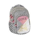 Plecak młodzieżowy, szkolny w kwiatki. Posiada trzy pojemne komory, kieszeń przednią z organizerem zamykaną na zamek oraz dwie boczne kieszonki wykonane z siatki, które pomieszczą butelkę, bidon czy termos. W komorze głównej znajduje się przegroda (na laptop), w drugiej komorze organizer z kieszenią na zamek oraz uchwyt na klucze. Wzmocnione profilowane plecy evafoam oraz miękkie, regulowane szelki sprawiają, że plecak nosi się niezwykle komfortowo. Plecak posiada wygodny uchwyt do przenoszenia, uszko do powieszenia oraz elementy odblaskowe dla zwiększenia bezpieczeństwa na drodze lub po zmroku. W Paso sięgamy po nowoczesne wzornictwo, nie zapominając o tym, by oferować solidne i praktyczne produkty. Waga: 600 g Rozmiar: 44x32x25
