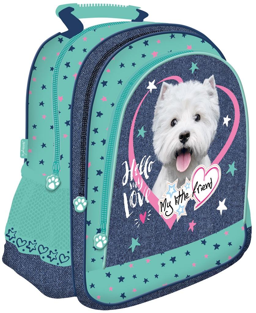 Funkcjonalność: 2 komory 1 kieszeń przednia 2 elastyczne siatkowe kieszenie boczne Komfort i bezpieczeństwo: gąbkowe panele usztywniające plecy miękkie szelki nieprzemakalny materiał regulacja długości szelek liczne elementy odblaskowe stopki gumowa rączka
