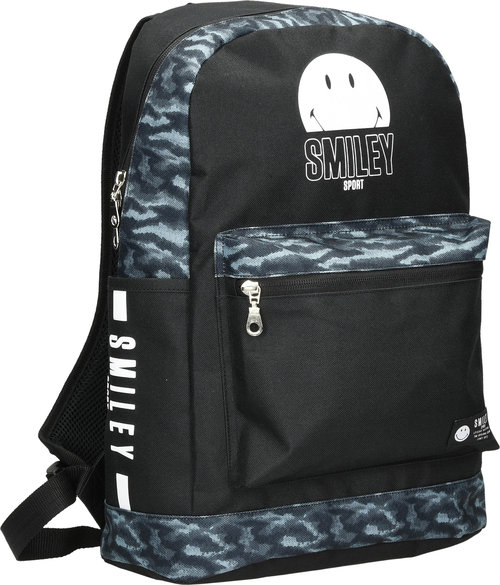 Wspaniały plecak młodzieżowy w oryginalnej licencji Smiley World. Jego praktyczna budowa oraz modny design prosto z Paryża sprawiają, że będzie doskonałym towarzyszem zarówno w lekkie dni szkolne jak i podczas wypadu do miasta. Połączenie czerni z szarością w ciekawym wzorze, wykończenie czarnymi suwakami niczym biżuteria – to wszystko daje gwarancję, że będzie to modny dodatek do każdej kreacji! Cechy plecaka: - pojemna komora główna zapinana na suwak - kieszonka przednia zamykana na suwak - dwie kieszenie boczne z materiału na bidon i akcesoria - miękko wyściełane, oddychające plecy - szerokie, dopasowane szelki oddychające z regulacją - uchwyt do zawieszenia plecaka - na przodzie plecaka napis 'Smiley Sport' - uśmiechnięta biała buźka - metalowe suwaki w czarnym kolorze - oryginalna metka z hologramem Smiley® World Wymiary: 27,5 x 15,5 x 42 cm THE ORIGINAL SMILEY® BRAND