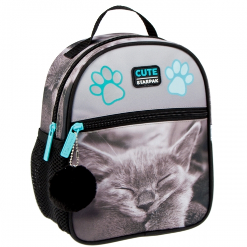 Plecak mini z kolekcji Starpak z grafiką ze słodkim zwierzątkiem jest idealny dla przedszkolaka do codziennego użytkowania lub dla starszego dziecka na wycieczki szkolne. Plecak posiada jedną główną komorę oraz przednią kieszeń - obie zamykane na zamek. Plecak wyposażono w wytrzymałe ramiona z szeroką możliwością regulacji oraz ucho, ułatwiające przechowywanie czy przenoszenie. Dodatkową ozdobą jest zawieszka w postaci pluszowego pompona. Zapoznaj się również z innymi produktami Starpak! Plecak jest wyrobem tekstylnym. Przeznaczony dla dzieci w wieku: 3+. Wymiary produktu(wys.x szer. x gł.) [cm]: 24x20x6.