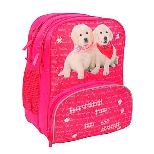 Plecak dwukomorowy, uchwyt; regulowane, profilowane szelki; boczna kieszeń z siatki, przednia kieszeń, ozdobne pulery.
