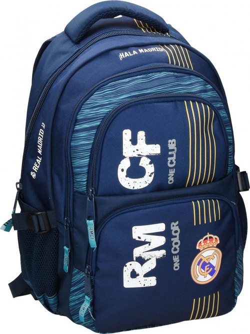 Trzykomorowy, duży plecak stworzony do zadań specjalnych. Niezwykle solidne wykonanie z dbałością o najmniejszy szczegół sprawia, że jest to idealny kompan do dźwigania wszystkich ćwiczeń oraz podręczników podczas mozolnych, szkolnych dni. Cechy plecaka: - duża, pojemna komora główna z przegrodą na laptopa oraz podwieszaną kieszonką na podwójny suwak - średnia komora z kieszonkami na akcesoria i kieszonką na suwak -przednia komora na suwak oraz kieszonka przednia - dwie boczne kieszonki z podwójnej siatki na bidon i drobne akcesoria - niezwykle trwałe i solidne suwaki zakończone metalowymi uchwytami z logiem RMCF - boczne pasy do kompresji plecaka - mocno usztywnione plecy, o ergonomicznym ukształtowaniu - specjalny AIR – SYSTEM – mesh back cooling system STREET - podwójny solidny spód plecaka - na szczycie szeroki solidny uchwyt - na froncie nadrukowane aplikacje RMCF - na froncie plecaka naszywka z herbem RMCF - na szelce połyskujący nadruk Real Madrid - oryginalna metka z hologramem Real Madrid Wymiary 30x20x45 Waga 700g.
