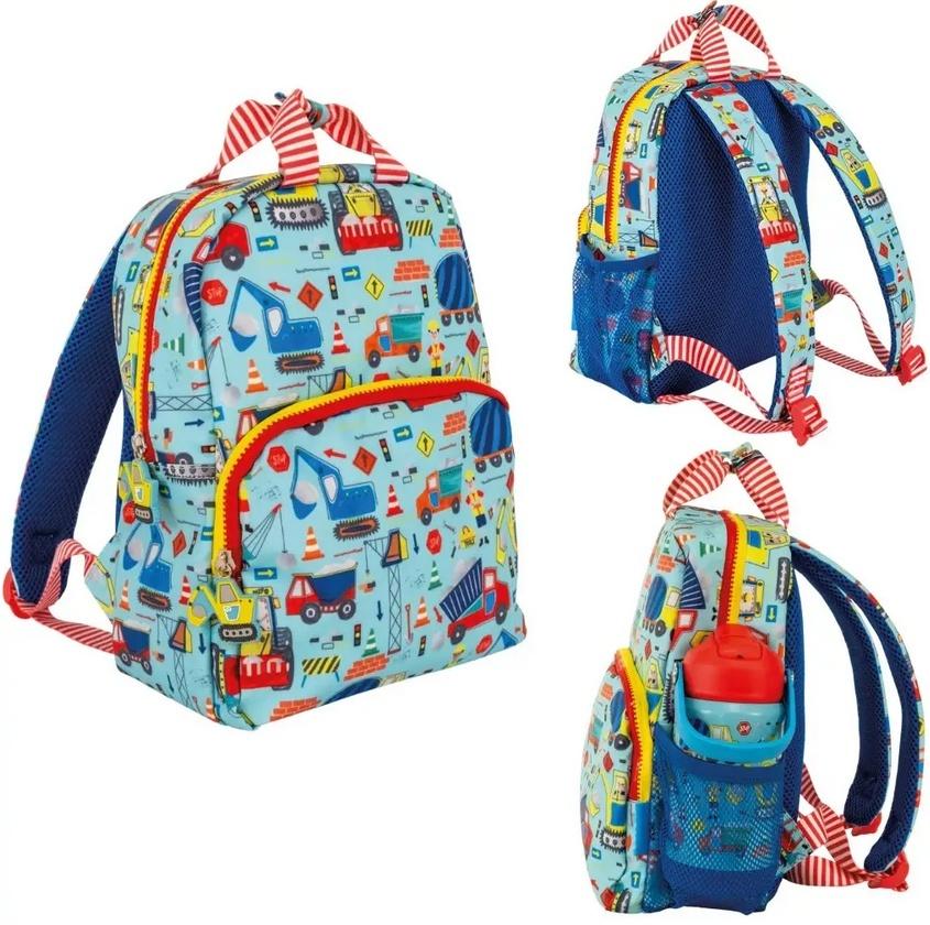 Doskonały dla poszukiwaczy przygód i odkrywców, plecak z motywem placu budowy! Niezależnie od tego, czy maluch zmierza do szkoły, wyrusza na wakacje, czy idzie na dodatkowe zajęcia, ten plecak ma idealny rozmiar, aby bezpiecznie pomieścić wszystkie jego rzeczy. Plecak posiada pojemną komorę główną i przednią kieszeń, obie zamykane na wygodne suwaki z breloczkami w kształcie koparek. Ponadto, ma wyściełane, regulowane szelki, boczną kieszeń na butelkę z napojem oraz wygodny górny uchwyt do przenoszenia i zawieszenia.
