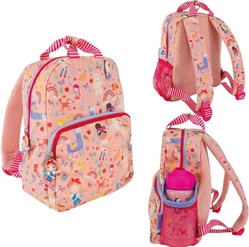 Doskonały dla poszukiwaczy przygód i odkrywców, plecak z motywem tęczowych wróżek! Niezależnie od tego, czy maluch zmierza do szkoły, wyrusza na wakacje, czy idzie na dodatkowe zajęcia, ten plecak ma idealny rozmiar, aby bezpiecznie pomieścić wszystkie jego rzeczy. Plecak posiada pojemną komorę główną i przednią kieszeń, obie zamykane na wygodne suwaki z breloczkami w kształcie wróżek. Ponadto, ma wyściełane, regulowane szelki, boczną kieszeń na butelkę z napojem oraz wygodny górny uchwyt do przenoszenia i zawieszenia.