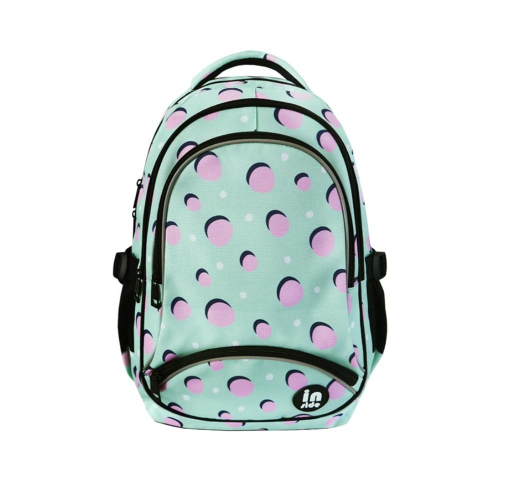 Plecak trzykomorowy miętowy różowe kropki
