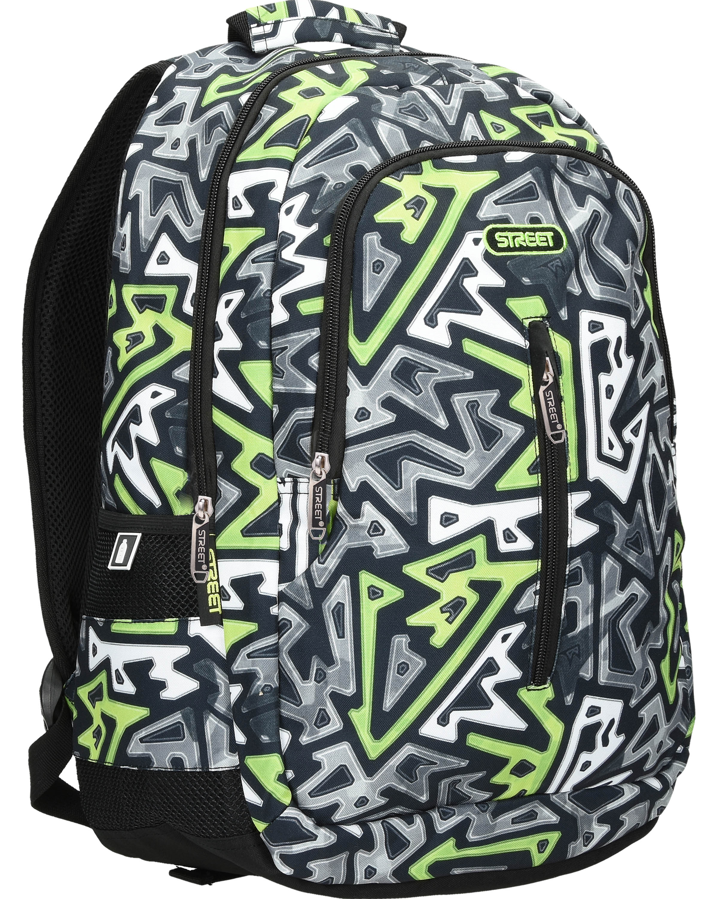Młodzieżowy plecak z kolekcji UNITED STREET o nowoczesnym wzornictwie to solidnie wykonany towarzysz nawet najcięższych chwil szkolnych i podróżnych. Cechy: - usztywnione plecy wyprofilowane oddychającą gąbką - specjalny STREET AIR-SYSTEM gwarantujący maksymalną przyjemność użytkowania nawet w upalne dni - szerokie szelki oddychające z regulacją, wyszytym logiem oraz z zawieszką z gumy na okulary - główna komora z przegrodą na laptopa - mniejsza komora z organizerem oraz odpinanym brelokiem na klucze - mała kieszonka podręczna, przednia zamykana na suwak - uszyty z wysokiej jakości materiałów nieperzemakanych - wszyte suwaki są grube i solidne, zakończone metalowym gumowanym uchwytem - dwie kieszonki boczne na bidon - zewnętrzny uchwyt na karabińczyk - gruby, podwójny spód plecaka gwarantujący udźwig nawet wyjątkowo ciężkiego pakunku Wymiary: 31 x 16 x 45 cm