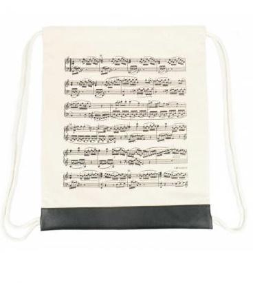 Stylowy, płócienny plecak/worek o wymiarze 44 x 37 cm. Kremowy z nadrukiem nut na pięciolinii. Dodatkowe, skórzane zabiezpiecznie u dołu. Wytrzymały i elegancki. Doskonały dla każdego melomana!