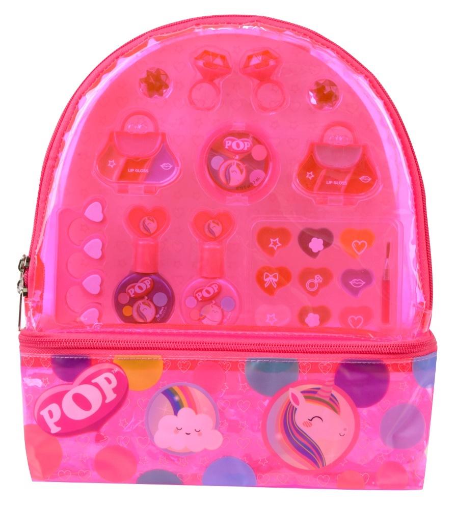 Plecak z kosmetykami dla dzieci POP Idealny plecak dla miłośniczek makijażu! Jest wyposażony w szeroki wybór makijażu i akcesoriów.