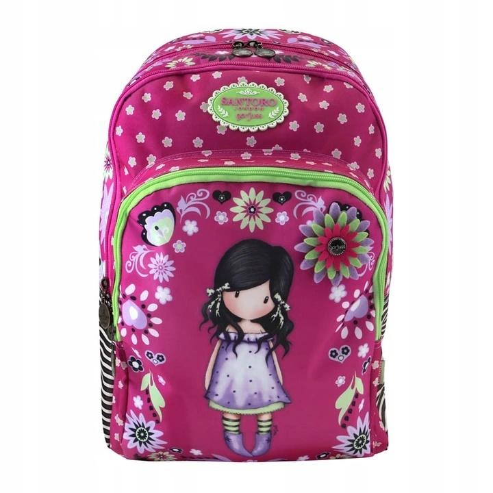 Wyjątkowo praktyczny i piękny plecak z wizerunkiem dziewczynki Gorjuss w odcieniach magenty, bzu i limonki.