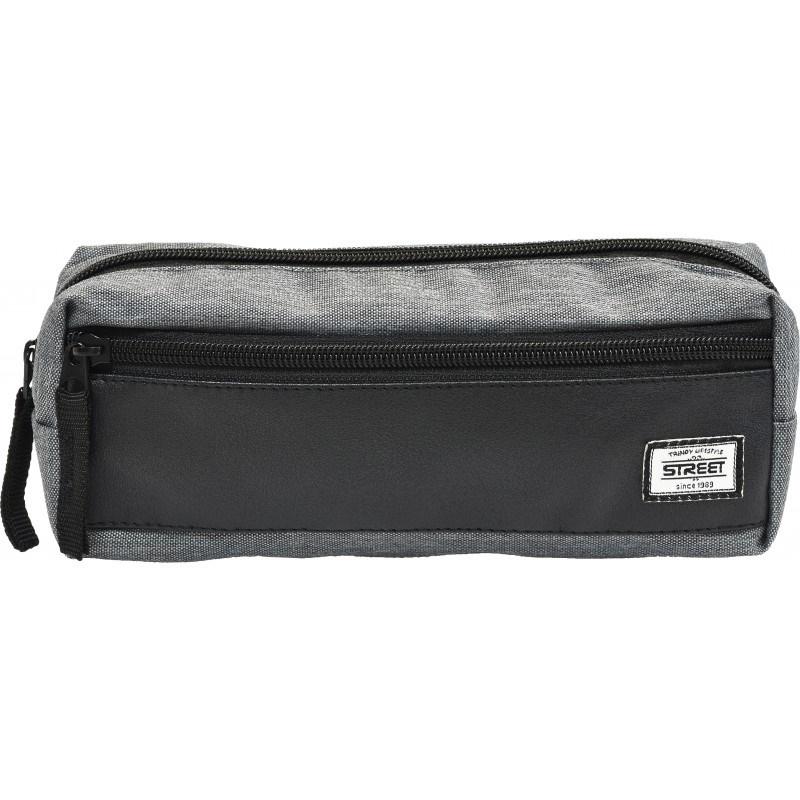 Dwukomorowa saszetka wykończona skórą ekologiczną, posiada komorę główną oraz kieszonkę boczną zamykane na zamek błyskawiczny. Występuje w trzech kolorystykach dopasowanych do plecaków. Trendy Lifestyle STREET® since 1989. Wymiary: 21 x 6,5 x 8 cm